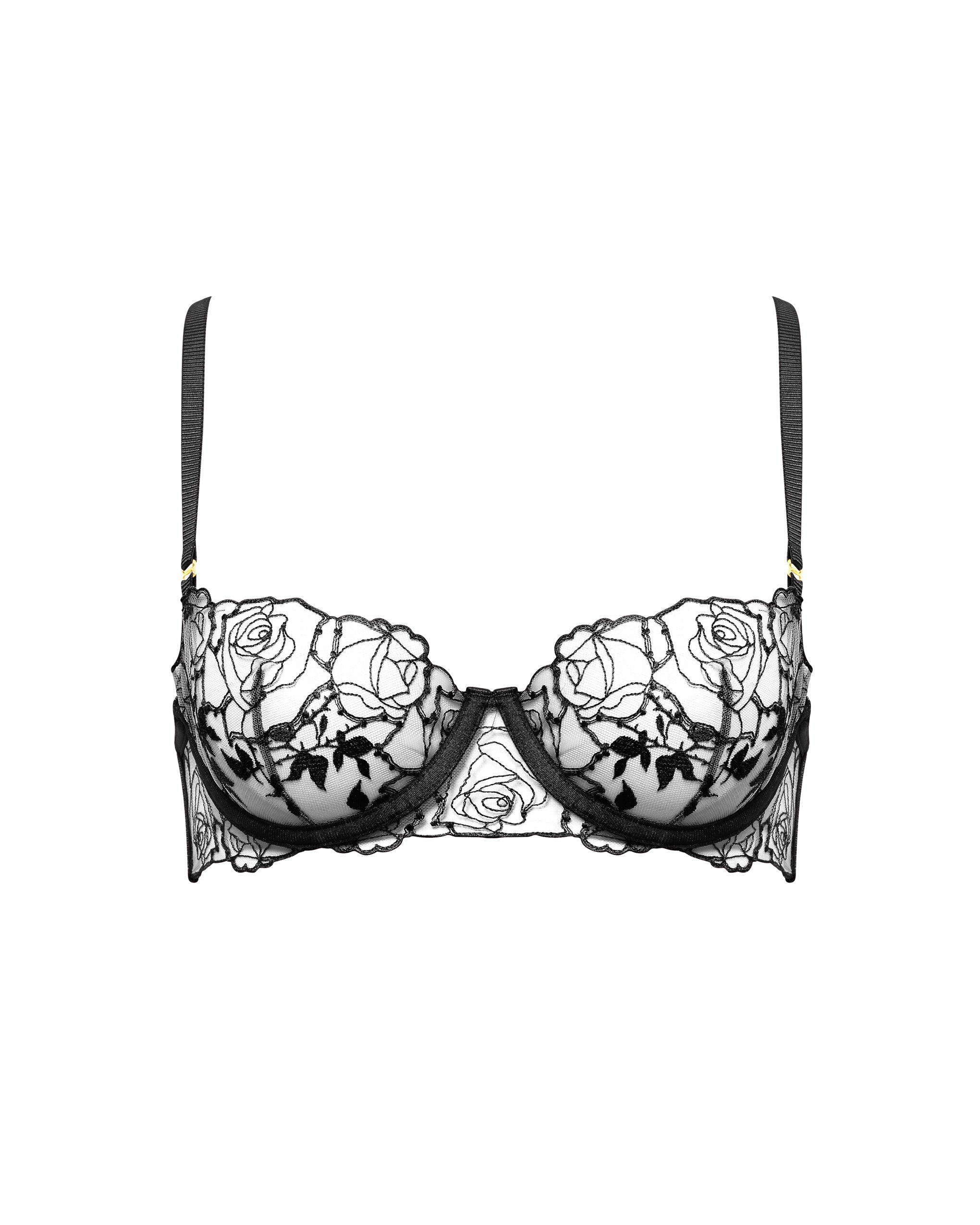 A lingerie masterpiece, the Rosalie set boasts intricate rose and vine leaf embroidery atop our signature premium sheer mesh. The complete set includes matching briefs and thong, or a chemise.