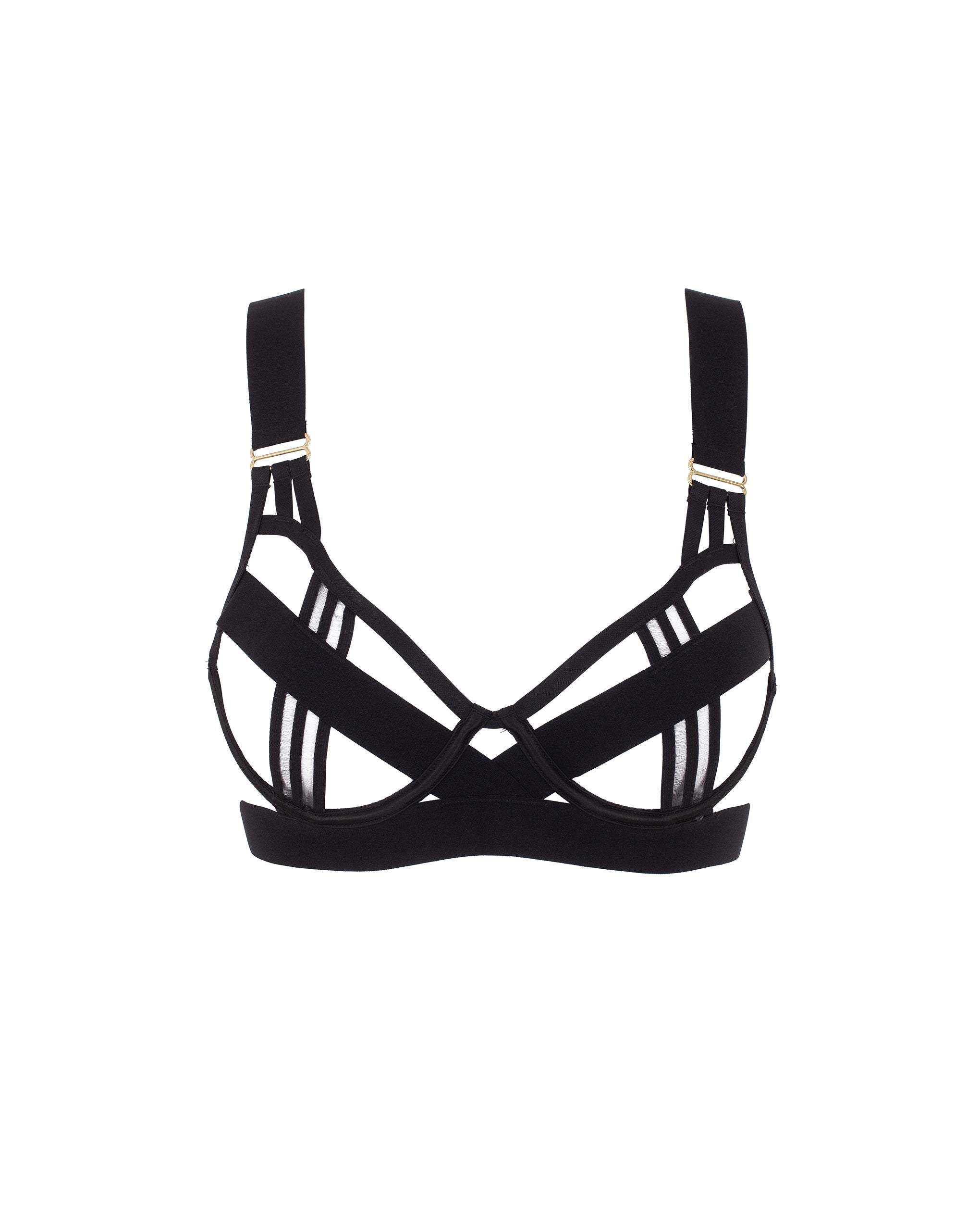 Offering a striking display of directional straps, the Sutton set is one to reach for when you want to take a break from lace and embroidery, but make a seductive statement nevertheless. Whether you opt for the classic bra and thong duo or indulge yourself in a complete look with the basque or suspender belt, you are guaranteed to be a vision of lingerie perfection.