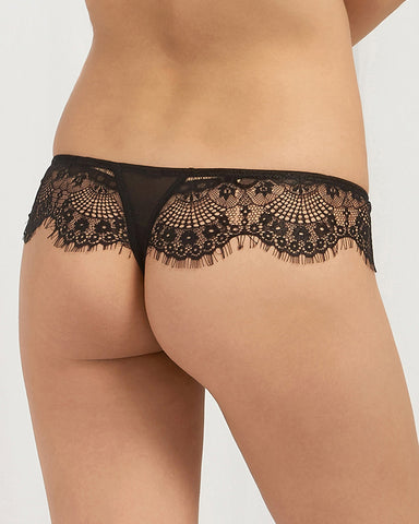 Deep lace tops bring an opulent feel to these seductively soft hold ups. Smooth yarns caress the skin, whilst the silicone top comfortably secures the hold ups in place. Designed for a flawless leg finish, these hold ups are manufactured in Italy for a premium finish and feel. Model is wearing Marina Bra and Thong in black.