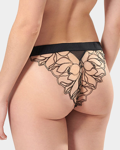 The charming Maia Embroidered Sheer Bra in black has romance and femininity at its core. Intricately detailed across the delicate, sheer mesh cups with floral-inspired embroidery, this fashion-forward piece radiates the dare-to-bare approach of our lingerie. Looking for a complete set? Style this stunning option with the equally gorgeous Maia thong or brief to experience sensuality in its purest form.