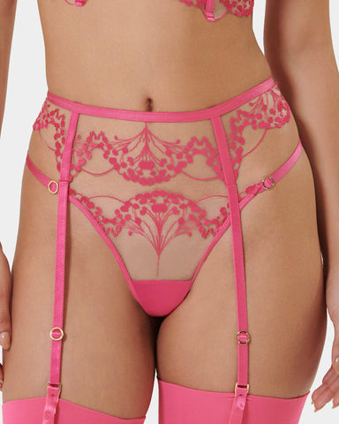 Step into elegance with the Marisa ECO Thong in Fuchsia Pink/Sheer, crafted from recycled fabrics. This bestselling style now comes in a striking pink shade, perfect for fun, everyday wear. Pair with the matching bra and suspenders or choose multiple other colourways.
