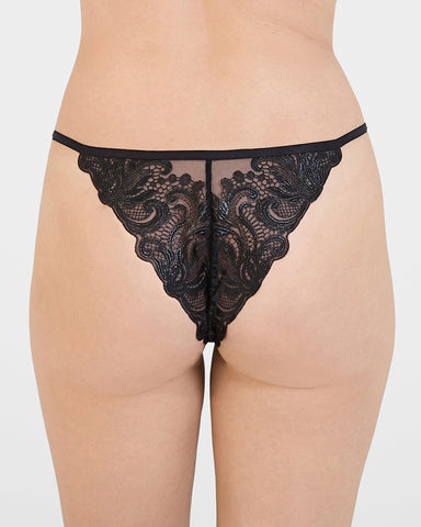 A vision of chic minimalism, the Nadia thong offers a glimpse of intricate lace to the front while the reverse is left entirely unembellished for a balanced look. Fitted with slim bands that perfectly frame the delicate design, the piece is offset with subtle gold-tone hardware that effortlessly ties it to the rest of the collection – style it with the corresponding pieces to unleash its maximal potential.